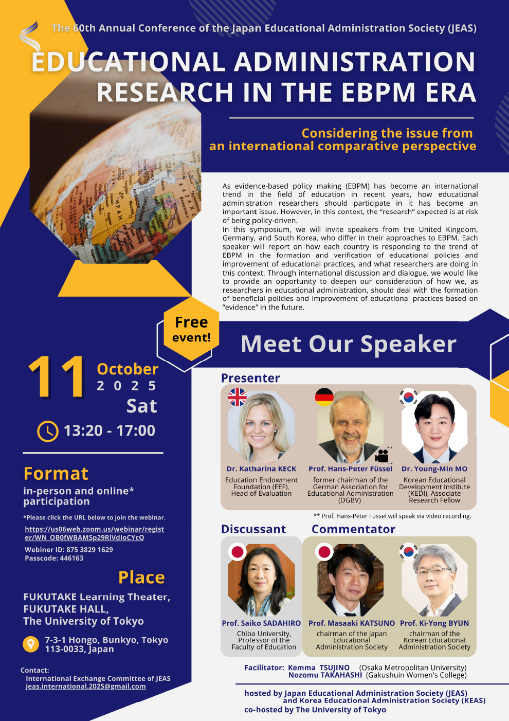 오는 2025년 10월 11일(토), ‘증거 기반 정책결정(EBPM) 시대의 교육행정학 연구의 과제와 전망: 국제비교 관점에서’를 주제로 한·일 교육행정학회 공동 주최 국제 심포지움이 개최됩니다.