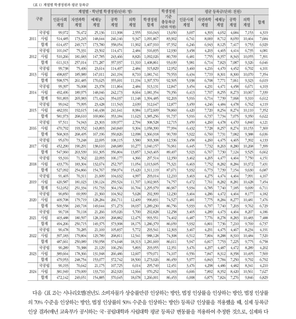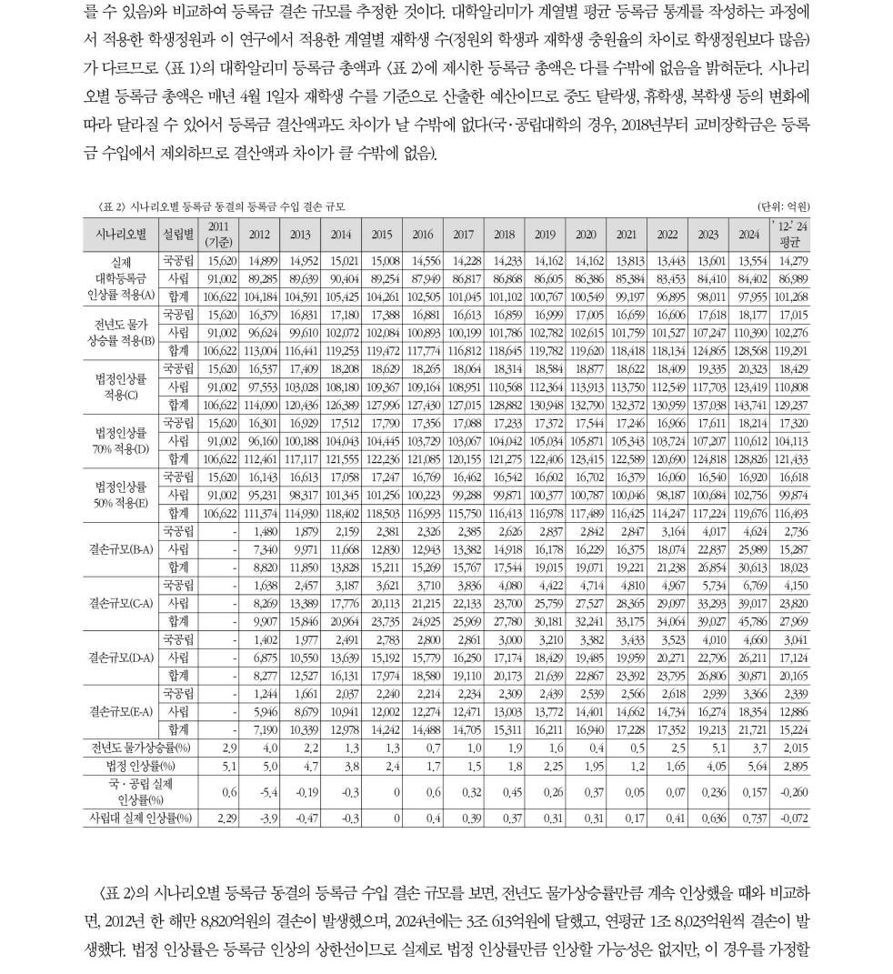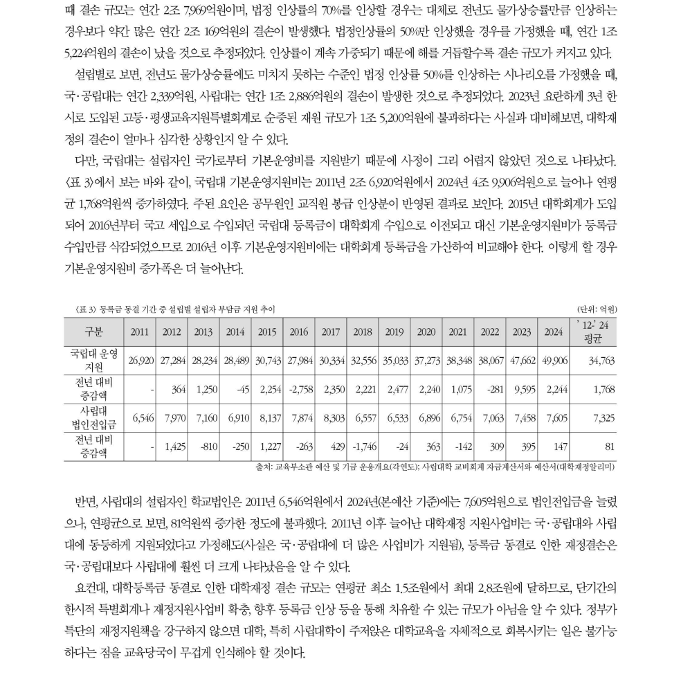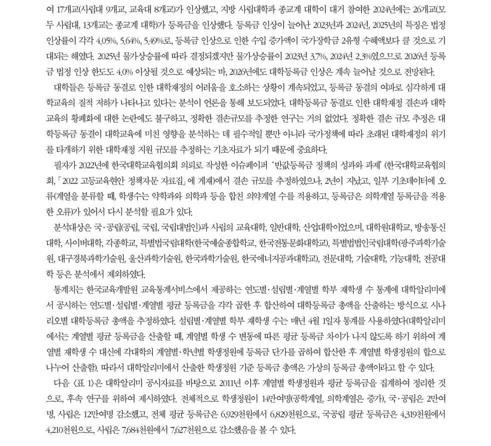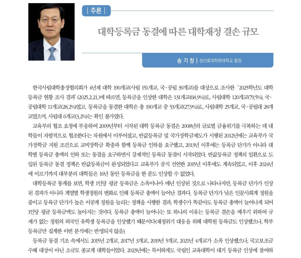 대학등록금 동결에 따른 대학재정 결손 규모 (송기창, 성산효대학원대학교 총장) - 뉴스레터 제158호 주론