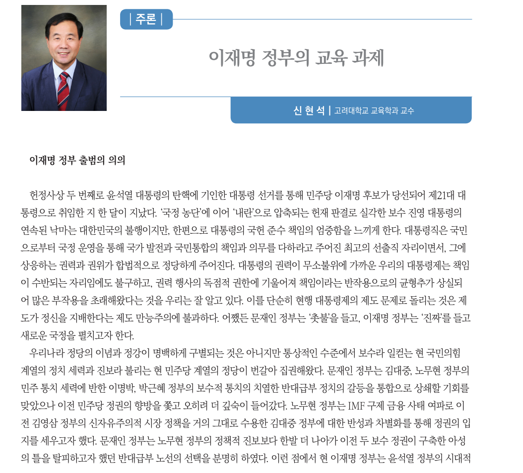 이재명 정부의 교육 과제(신현석, 고려대학교 교육학과 교수)