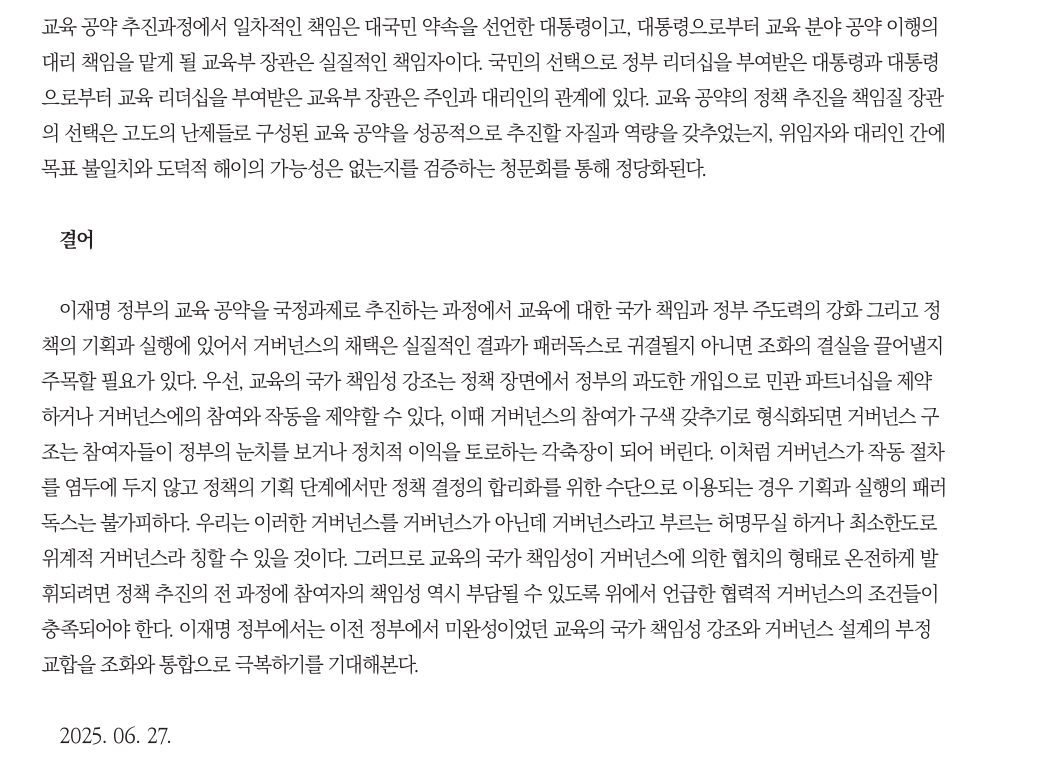 ※ 이 글은 한국교육행정학회 뉴스레터 제160호에 주론으로 기고된 글입니다.