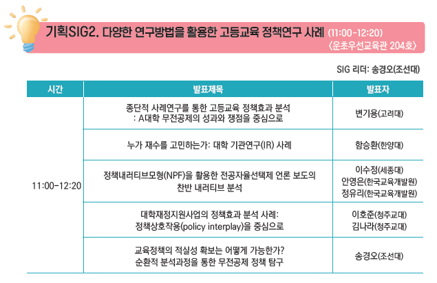 2025 연차학술대회 기획SIG2_다양한 방법론을 활용한 고등교육 정책연구 사례