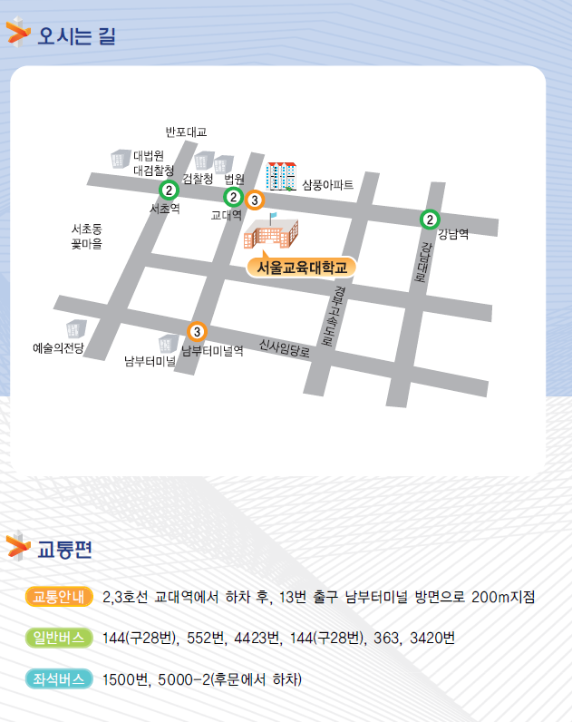 제1회 현장교원학술집담회가 다음주 토요일에 개최됩니다. 교육 정책 현안에 대해 현장 교원으로 근무하시는 회원들의 의견을 들어볼 수 있는 좋은 기회입니다. 회원 여러분의 많은 참여 부탁드립니다. - 교육행정학회 사무국 드림 - == 제1회 현장교원학술집담회 == ♤ 주제: 교육 정책 현안을 바라보는 교원의 입장 ♤ 일시: 2010년 7월 17일(토) 13:30-17:30 ♤ 장소: 서울교육대학교 인문관 103호 ♤ 주최: 한국교육행정학회 ♤ 후원: 서울교육대학교 [일정 안내] 13:30-14:00 등록 14:00-14:10 개회식 / 사회 : 정수현(본회 사무국장, 서울교대) 개회사: 송광용(본회 회장, 서울교대) 주제발표 및 자유토론 사회 : 송경헌(서울교대부설초 교장) 14:10-15:10 주제발표 Ⅰ / 교원능력개발평가 발표 1: 김덕희(경북대 강사) 교원능력개발평가제 성공적 정착을 위한 개선 방안 탐색 토론 1: 강성봉(서울시교육청 직업진로교육과 과장) 발표 2: 김연주(수원 조원고 교사) 교원능력개발평가의 문제점과 개선방향 탐색: 현장교원들의 인식을 중심으로 토론 2: 이쌍철(부산 동평초 교사) 15:10-15:40 주제발표 Ⅱ / 학생인권 발표 3: 정소연(구리 동구초 교사) 학생인권조례에 대한 제언 토론 3: 김희대(서울 강남교육청 전문상담교사) 15:40-16:00 휴식 16:00-17:00 주제발표 Ⅲ / 학업성취도평가 발표 4: 이천희(서울 오현초 교사) 초등학교에서 학업성취도 평가 현황과 과제 토론 4: 이상철(부산 공업고 교사) 발표 5: 이상규(서울 서초초 교사) 국가수준학업성취도평가가 초등학교 학급교육활동에 미치는 영향 토론 5: 장 훈(안산 화정초 교사) 17:00- 자유 토론 및 폐회