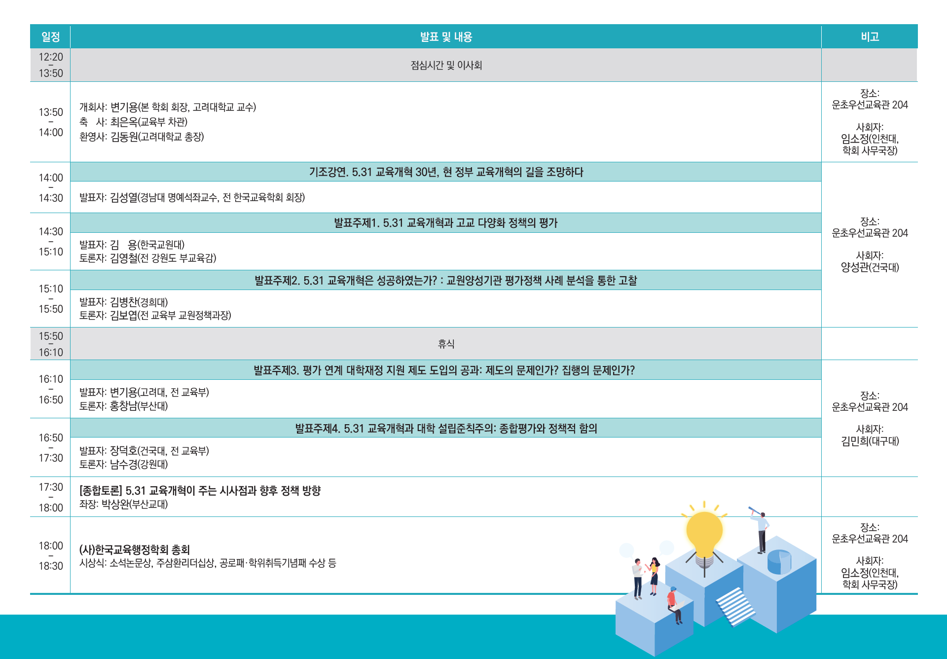 2025년 한국교육행정학회 연차학술대회가 「교육개혁의 궤적과 미래: 5.31 이후, 현 정부 교육개혁의 길을 조망하다」 를 주제로 11 1일(토) 고려대학교 서울캠퍼스 운초우선교육관에서 개최될 예정입니다.